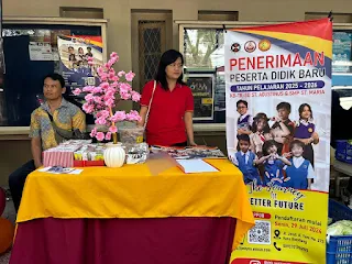 Promosi Tim PPDB Sekolah SMP Santa Maria Bandung dan TK-SD Santo Agustinus Bandung bersama siswa siswi SD dan SMP di Halaman Gereja Salib Suci Kemuning pada Minggu, 9 Maret 2025